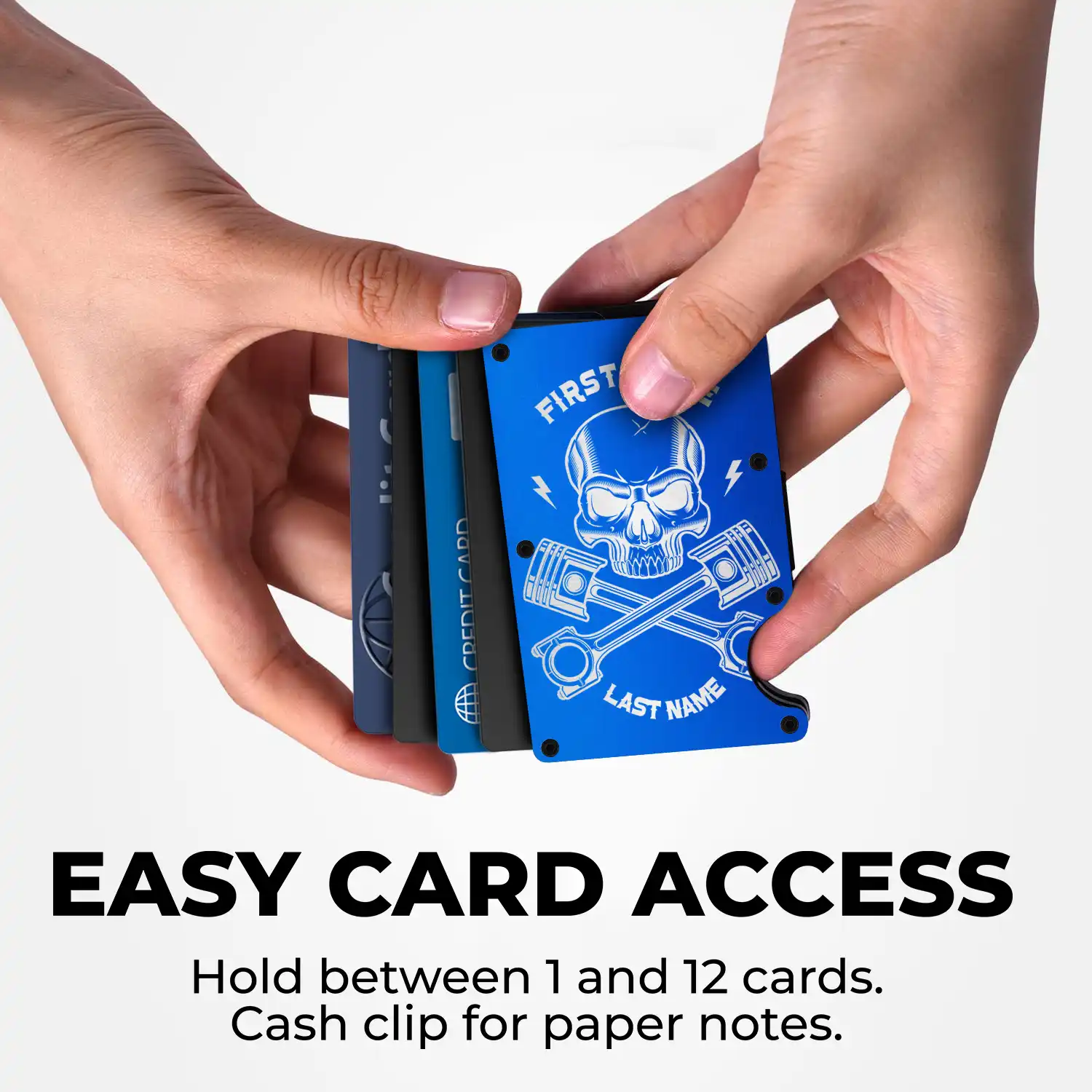 - Holds up to 12 cards, including cash, ID, credit cards, bank cards, and business cards.